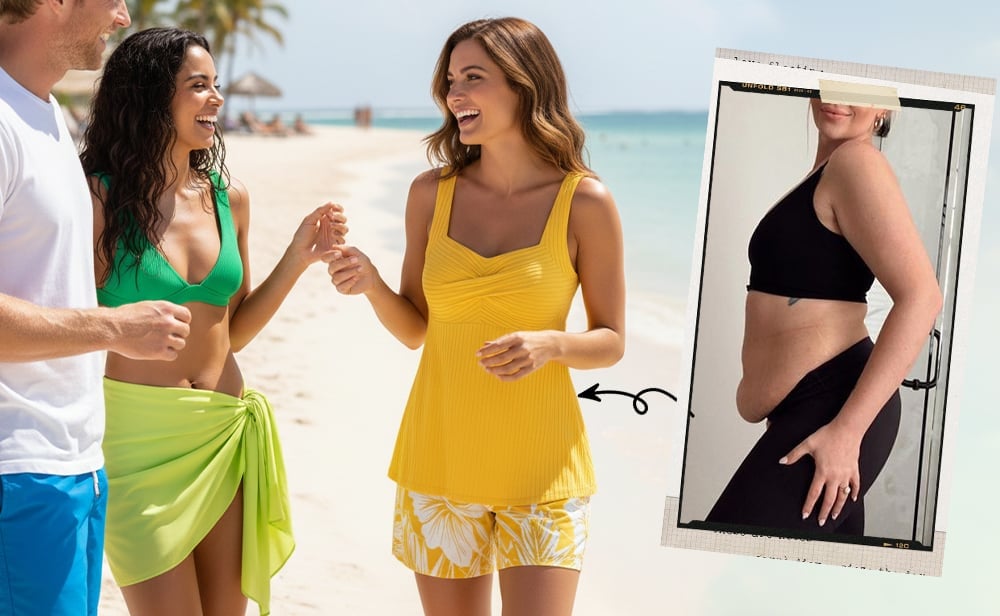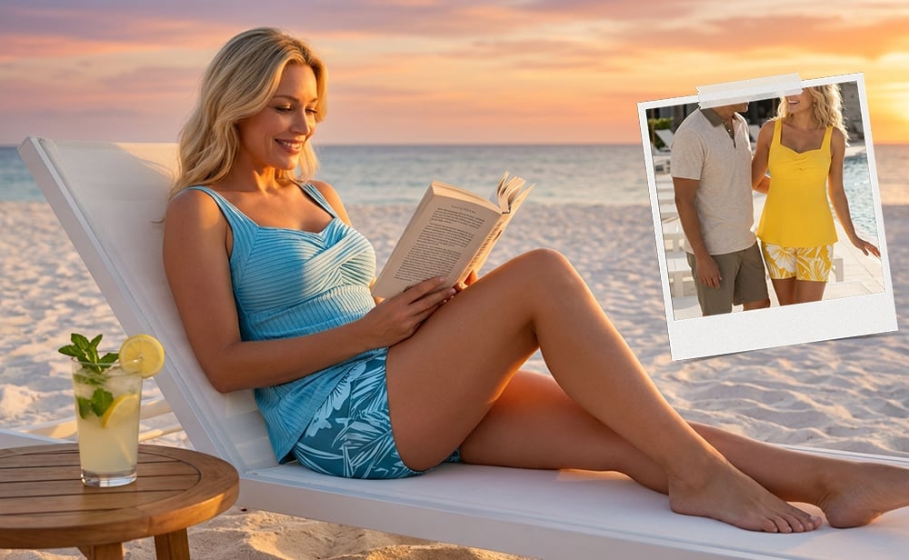 Two-Piece Body-Covering Printed Boxer Swimsuit